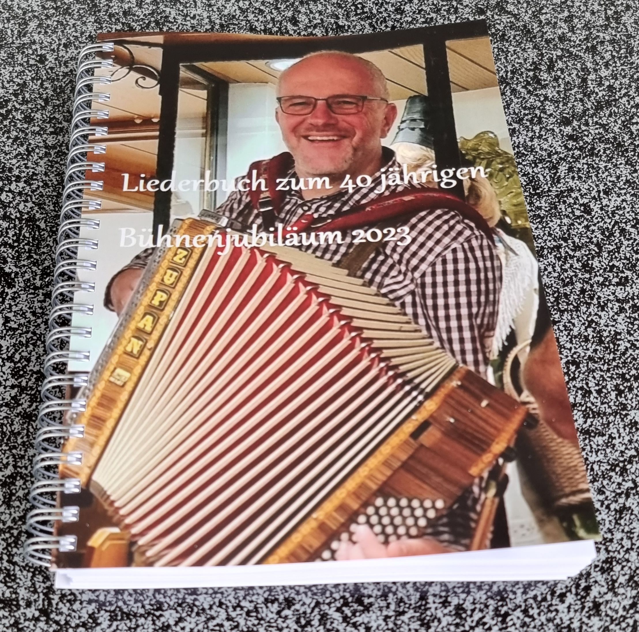- Liederbuch (Printversion) zum 40-jährigen Bühnenjubiläum, 250 Seiten, auch alle Lieder aus dem Rucksackmusikantenliederbuch mit passender Seitennummerierung sind enthalten.